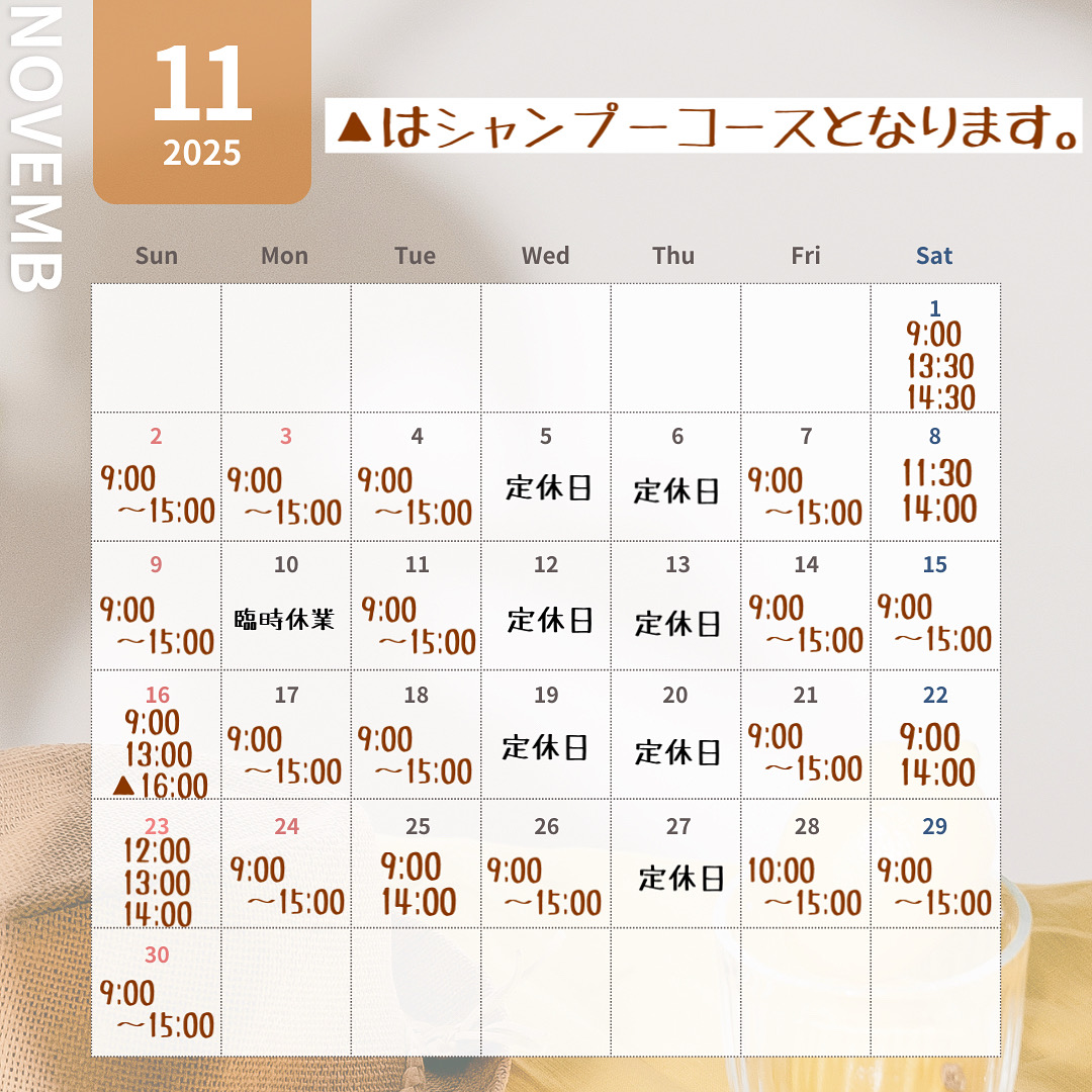 シャンプーはもちろん、バリカンカットや全身ハサミのみでカットするオールシザーカットなど様々なコースをご用意しております。
